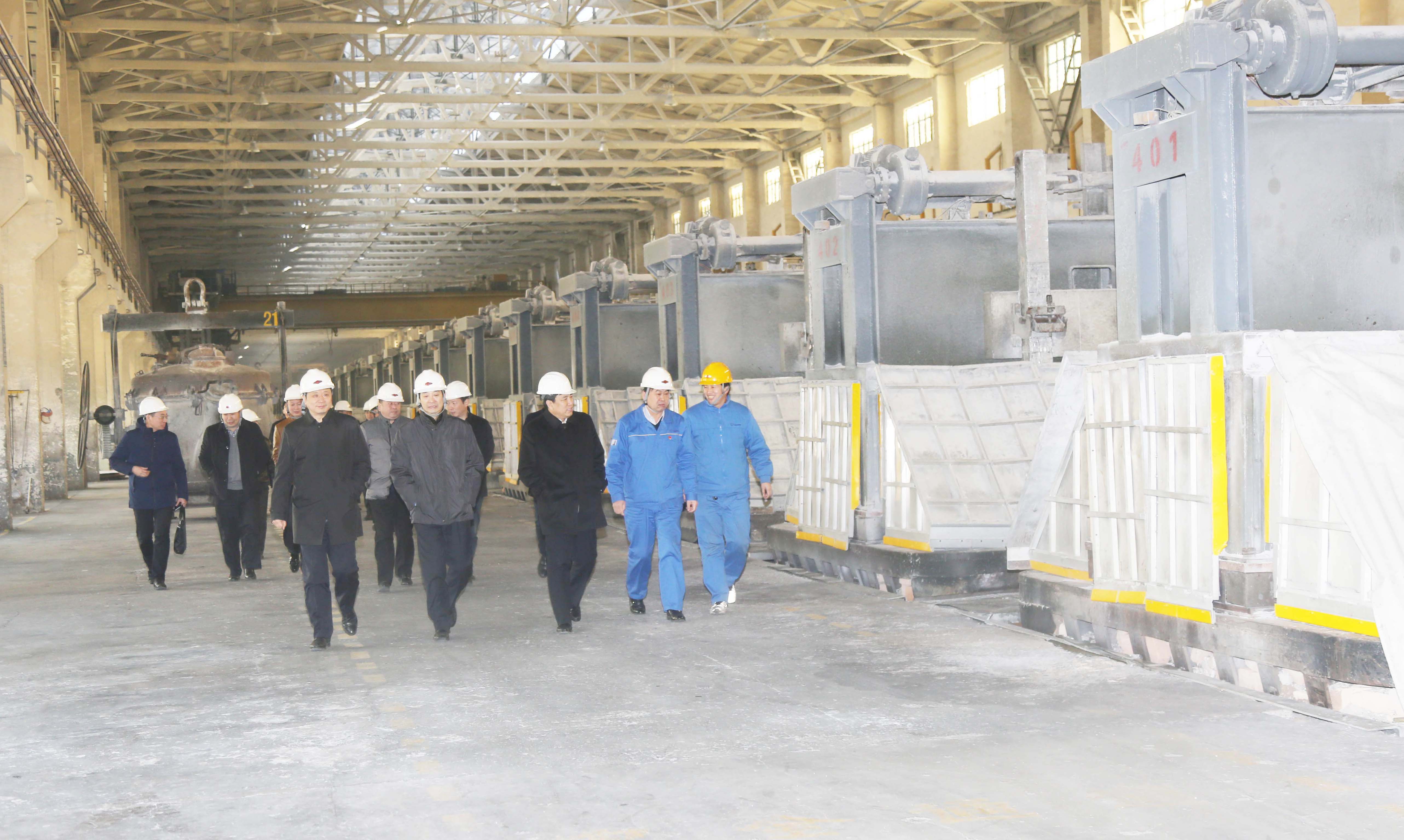 袁劍一行先后到萬(wàn)基鋁業(yè)一公司炭素車間焙燒工段、電解車間,萬(wàn)基炭素二公司焙燒車間,萬(wàn)基鋁業(yè)二公司電解一車間,石墨公司機(jī)加工車間成品展示區(qū),萬(wàn)基鋁加工冷軋車間、鋁箔車間、精整車間等處參觀。每到一處,考察團(tuán)一行都認(rèn)真聽(tīng)取企業(yè)負(fù)責(zé)人介紹,詳細(xì)了解公司環(huán)保改造取得的成效。