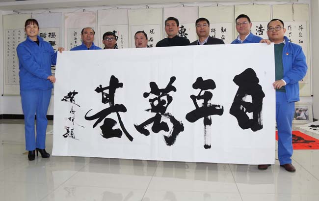 中國書法家協(xié)會會員趙昌林回到了家鄉(xiāng)新安縣,于12月15日到萬基控股集團開展書法創(chuàng)作,欣然揮毫潑墨,雄渾瀟灑的書法作品一一躍然紙上。題寫的“百年萬基”四個遒勁大字熠熠生輝,寓意萬基持續(xù)發(fā)展,永續(xù)萬年基業(yè)。