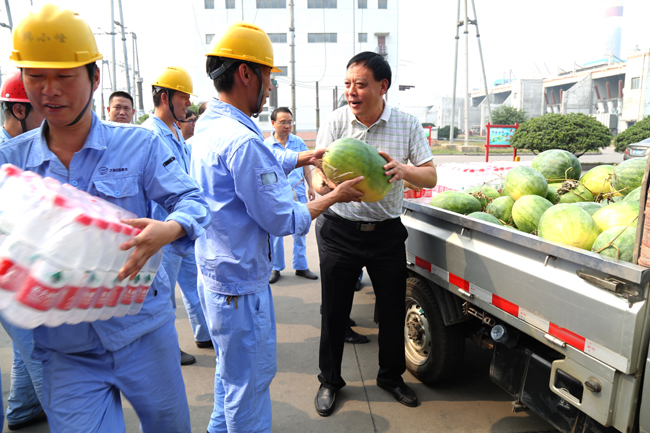 8月4日,新安縣人大副主任、縣總工會(huì)主席王保敏,副主席梁松獻(xiàn)到萬(wàn)基鋁業(yè)一公司、二公司、萬(wàn)基金屬鈉公司的電解車(chē)間等高溫崗位進(jìn)行慰問(wèn),送上西瓜和礦泉水等降溫物品,使生產(chǎn)一線(xiàn)員工在炎炎盛夏中感受到了絲絲清涼。集團(tuán)公司黨委副書(shū)記、工會(huì)主席王宏偉,副總經(jīng)理韓鐵京等陪同。