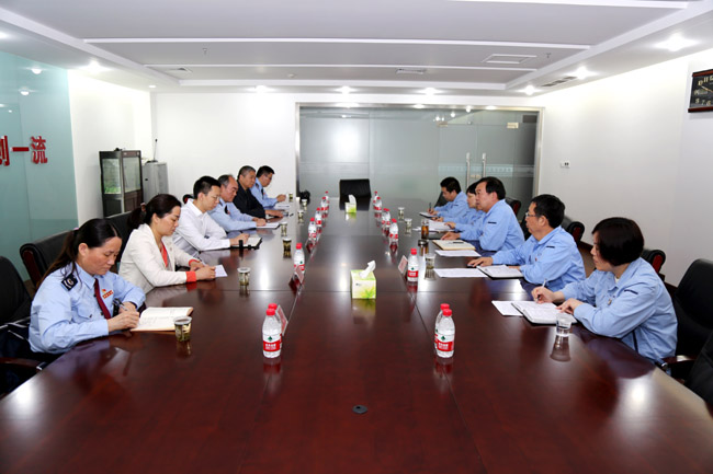 2017年5月3日上午,市國稅局總會計師郝戈、縣國稅局局長席文篤等一行到我公司調(diào)研生產(chǎn)經(jīng)營運(yùn)行情況。集團(tuán)公司總經(jīng)理郭峰、總會計師王尚友陪同。