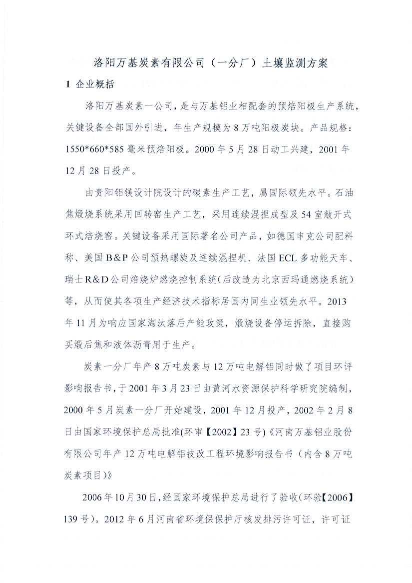 洛陽萬基炭素有限公司(一分廠)2020土壤自行監(jiān)測方案