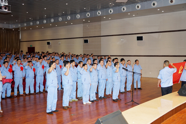 上午8時(shí)30分,身著藍(lán)色工裝的全體黨員干部在激昂的國(guó)歌聲中起立。15名新黨員面對(duì)黨旗莊嚴(yán)宣誓,光榮加入黨組織行列。在“倒逼增效、爭(zhēng)當(dāng)先鋒”活動(dòng)中涌現(xiàn)出的27名優(yōu)秀黨員、4名優(yōu)秀黨務(wù)工作者、4個(gè)優(yōu)秀黨支部受到表彰。萬基鋁加工營(yíng)銷中心板帶處業(yè)務(wù)員張功勛代表優(yōu)秀黨員、二鋁電解一車間四區(qū)區(qū)長(zhǎng)王國(guó)峰代表新黨員分別作了典型發(fā)言。